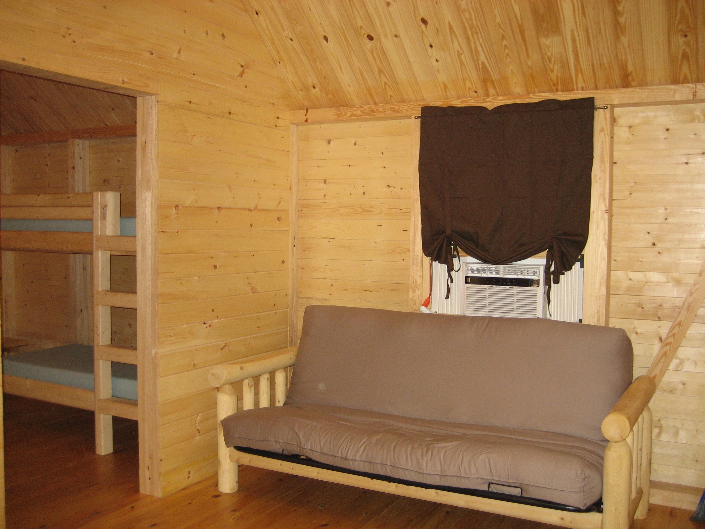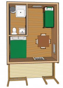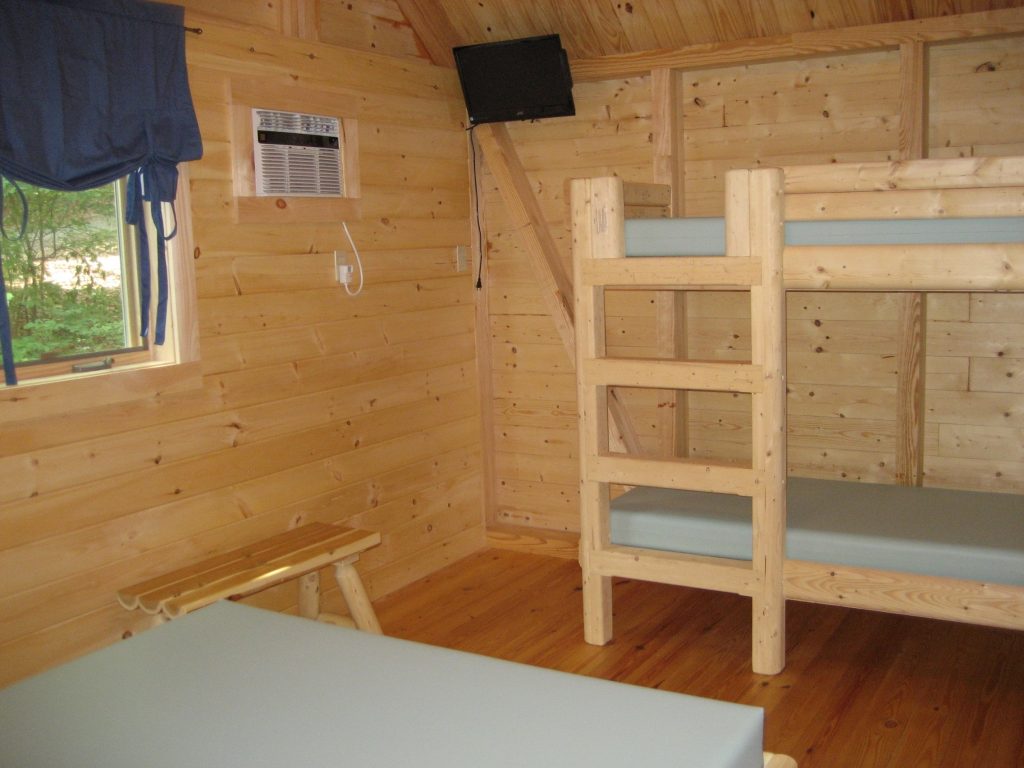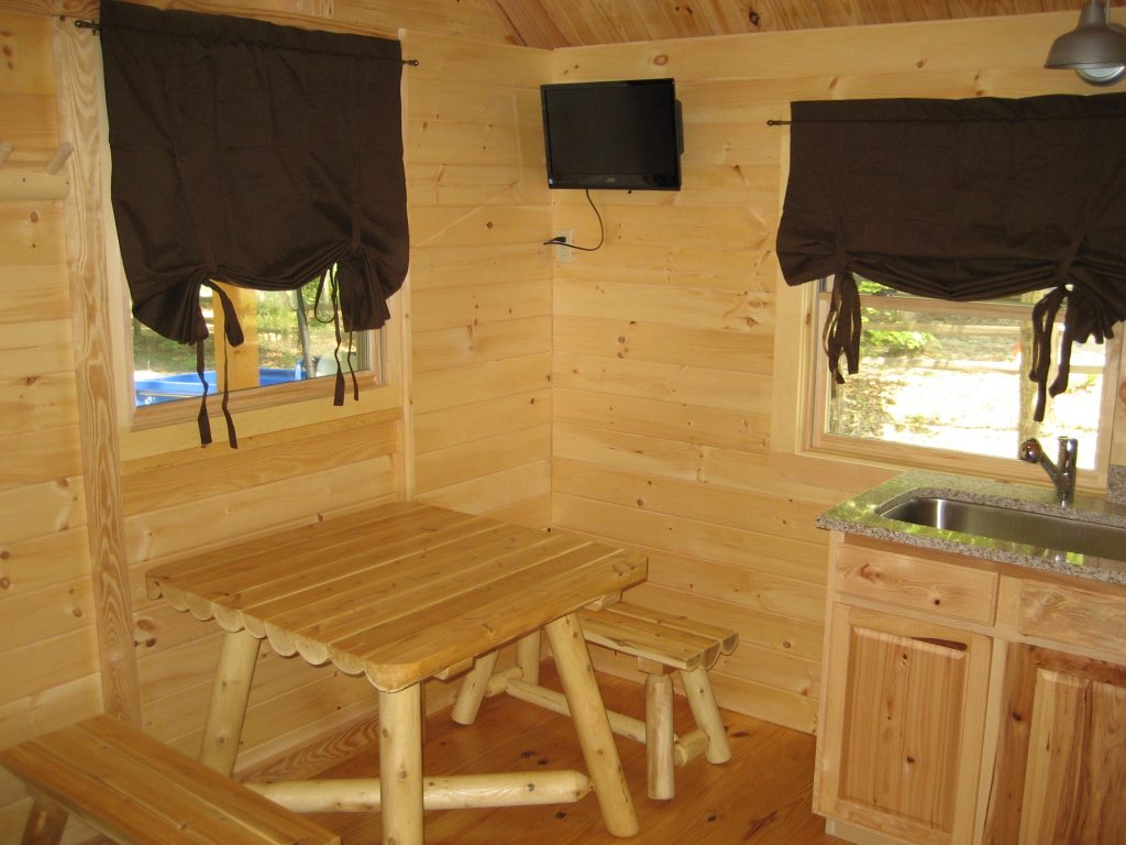 The one room model with bath is ideal for guests who want the experience of camping without sacrificing the comforts of home.