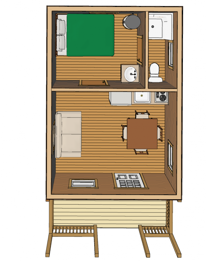 The two room cottage is a good choice for those that like camping with all the amenities of home, including the kitchen sink.