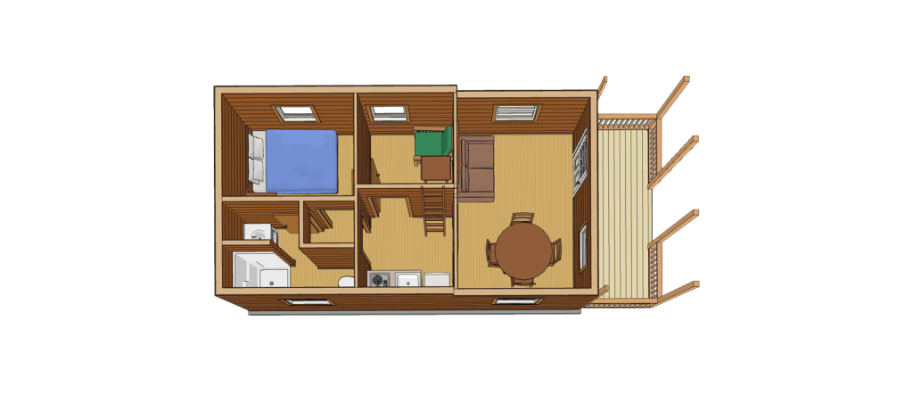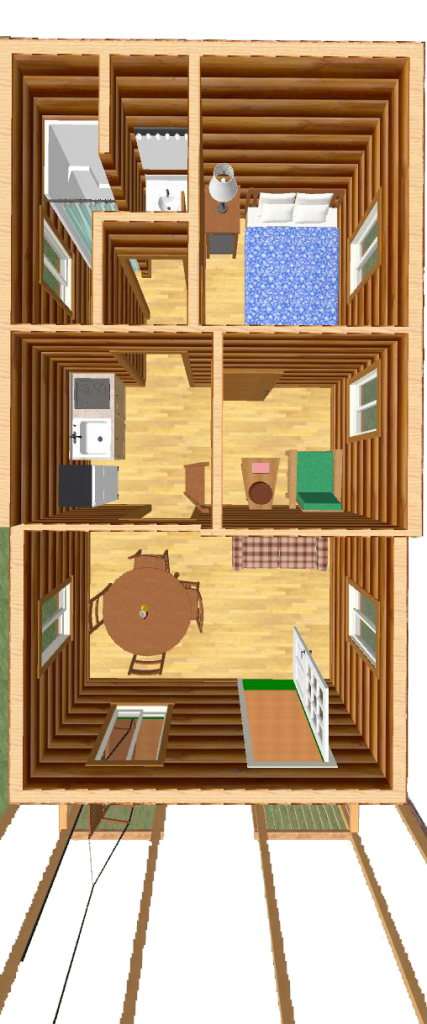 Your guests will see our 14′-7″ x 27′ log cabin package as an idyllic cozy cottage.  This log cabin can be rented by family and friends who want to share the joys of log cabin living together. You’ll soon discover that the Heritage will be in high demand throughout your rental season.